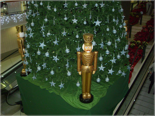 The whole shopping centre has been decorated for the holiday season, and there is a huge Christmas tree at the entrance. This tree is three floors tall. In Spain, the season begins later than other countries, and lasts till January 6th, which is when the three wise men travelled from far away and took gifts for baby Jesus. Many of the shops that belong to the mall, have also been decorated. The toy soldiers below are at the entrance and greet all the shoppers that enter from the parking lot.