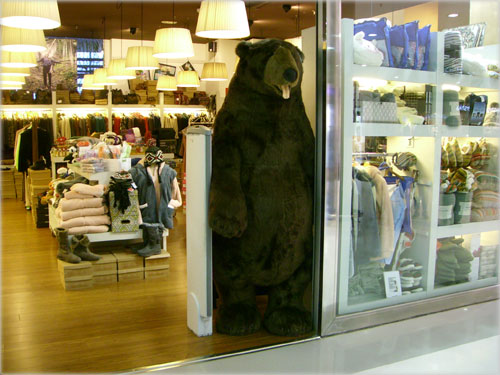 The "Natura" Spanish franchise shop has a friendly big bear at the entrance.